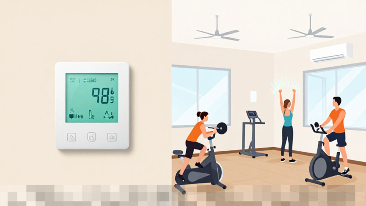 Pemantauan suhu secara otomatis dapat dilakukan dengan menggunakan sensor dan thermostat. Alat ini membantu menjaga suhu ruangan tetap stabil, sehingga tidak terjadi perubahan drastis yang dapat mengganggu aktivitas pengunjung. Dengan teknologi ini, pengelola gym dapat lebih mudah mengatur suhu sesuai dengan kondisi ruangan secara real-time, terutama selama jam-jam sibuk.